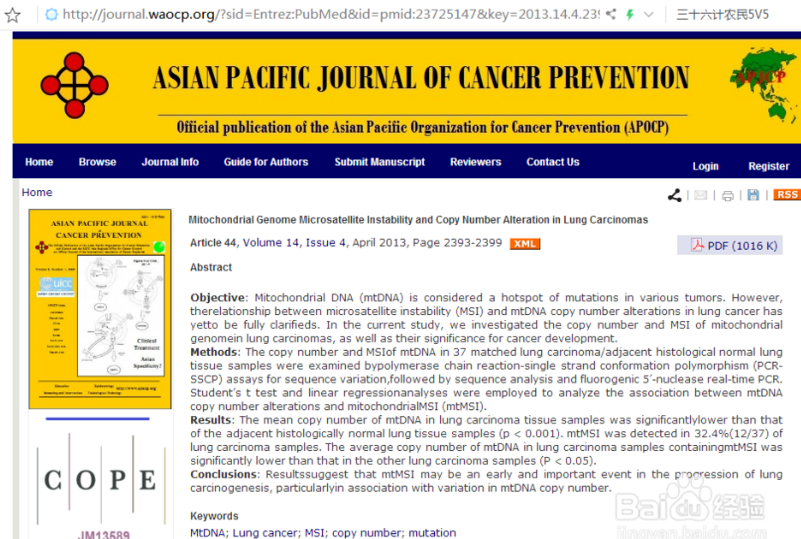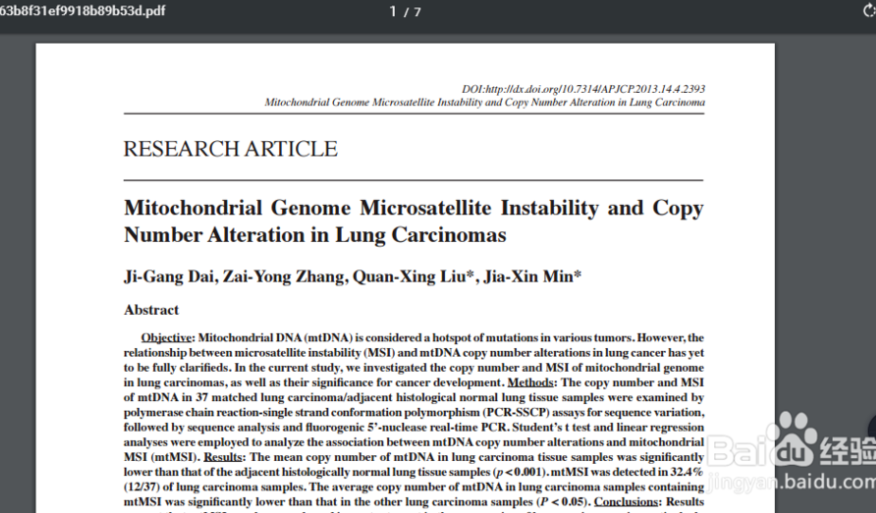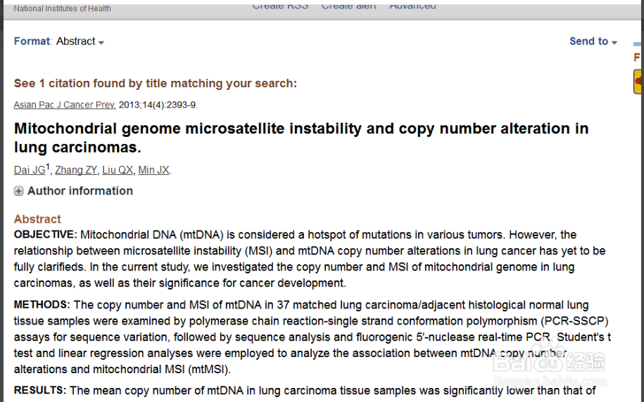 在空白框内输入你要下载的文献的题目,比如这里选择。Mitochondrial Genome Microsatellite Instability and Copy Number Alteration in Lung Carcinomas