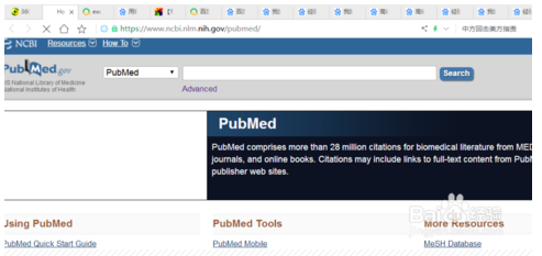 点击百度,输入pubmed,点击搜索。或者输入: https://www.ncbi.nlm.nih.gov/pubmed